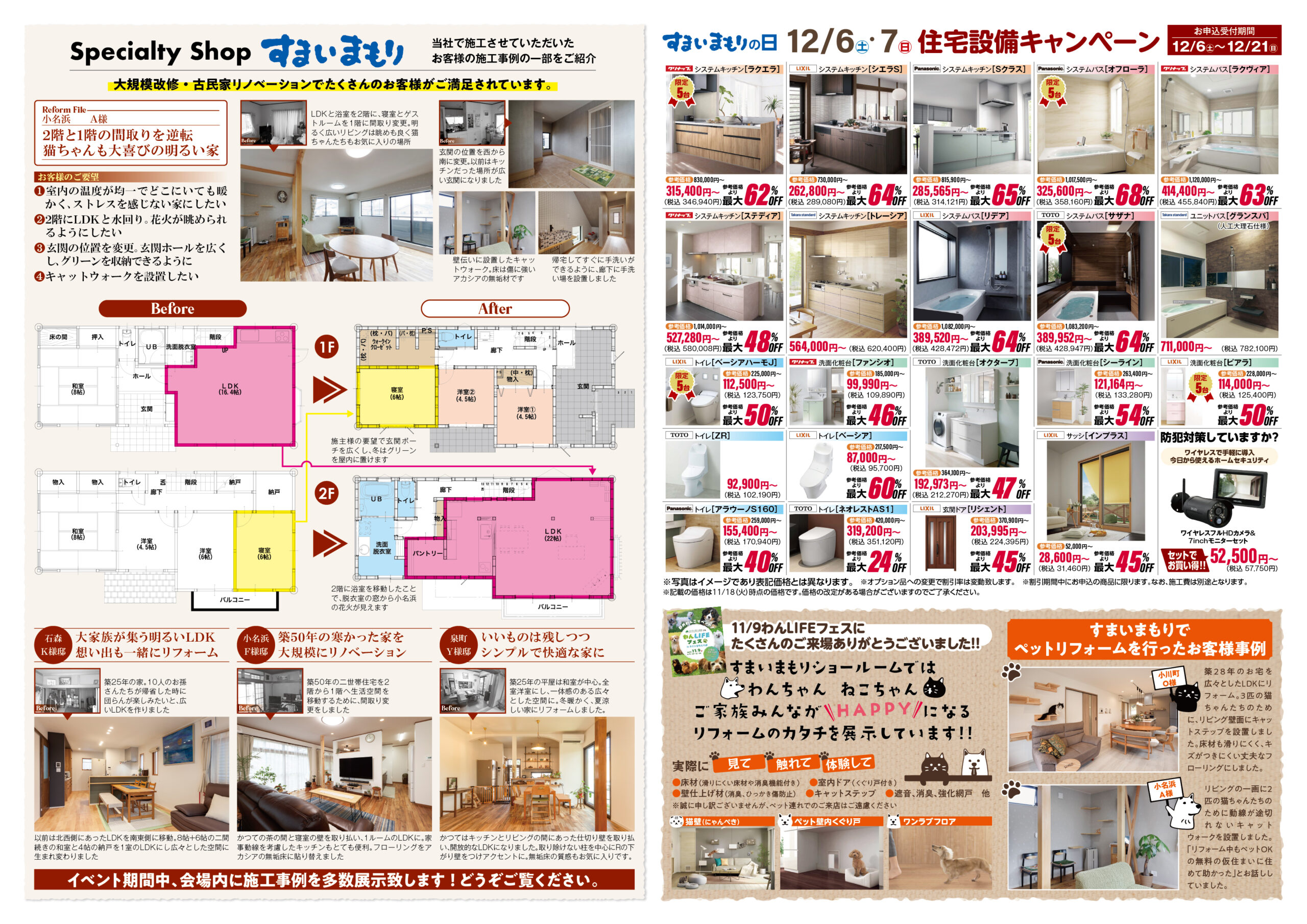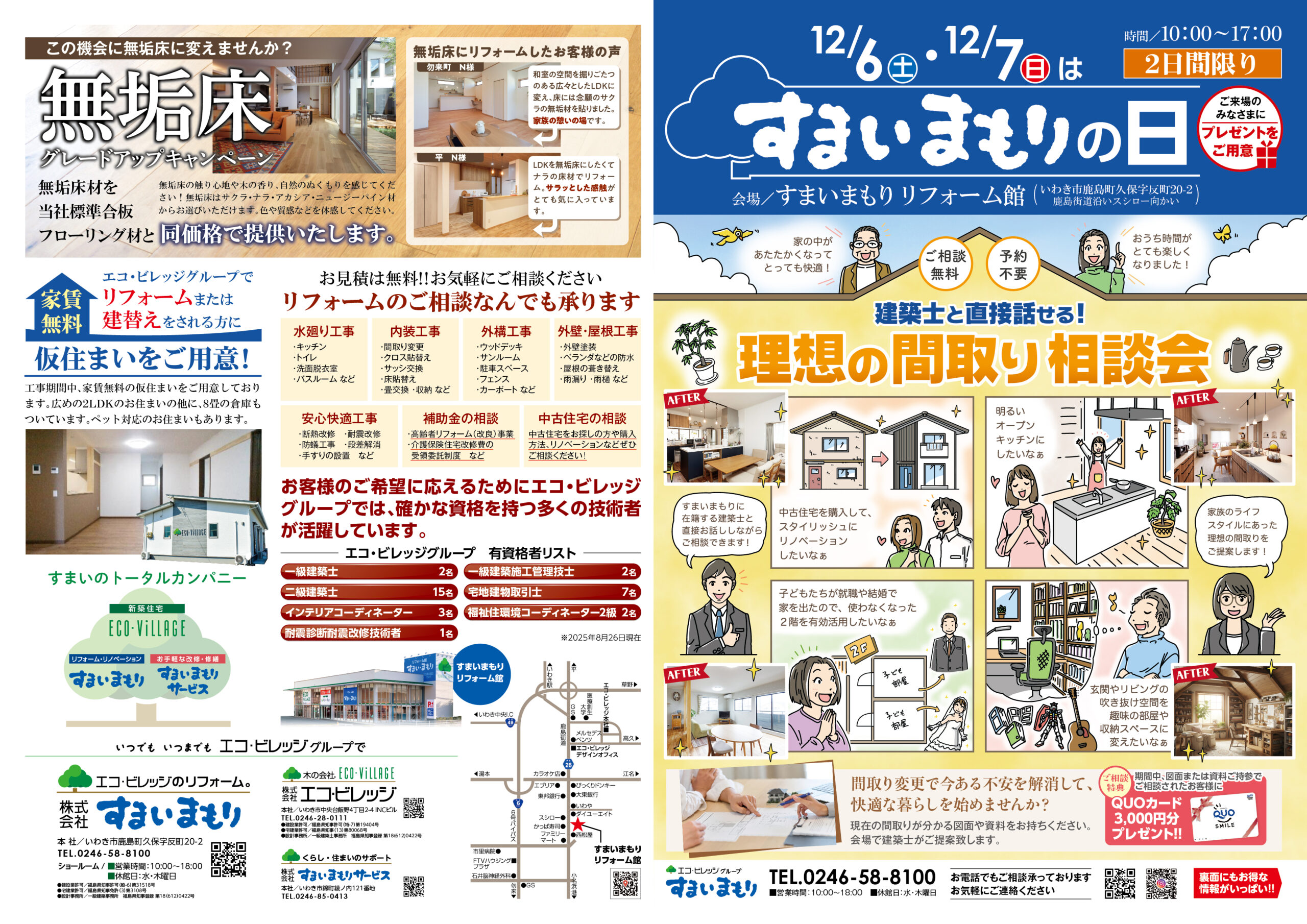 - 12月6日(土)・7日(日) 10:00~17:00 (会場:すまいまもり リフォーム館) 詳しくはこちら >