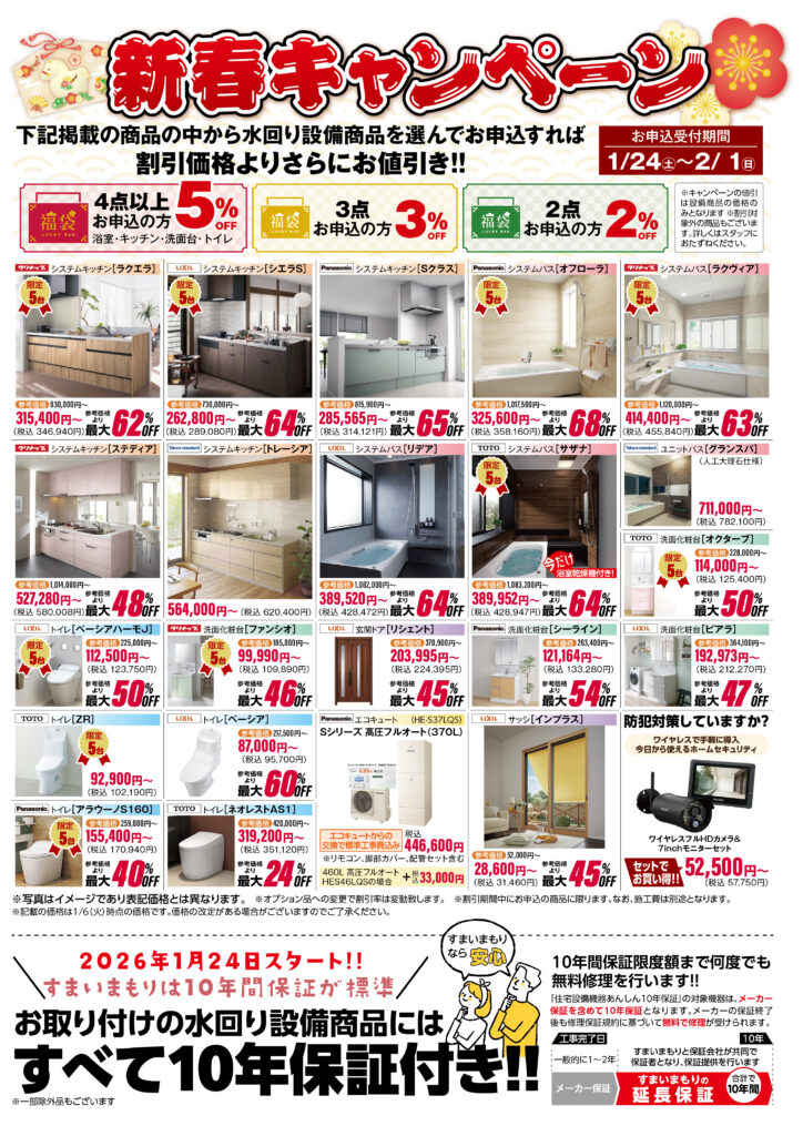 - 1月24日(土)・25日(日) 10:00~17:00 (会場:すまいまもり リフォーム館) 詳しくはこちら >